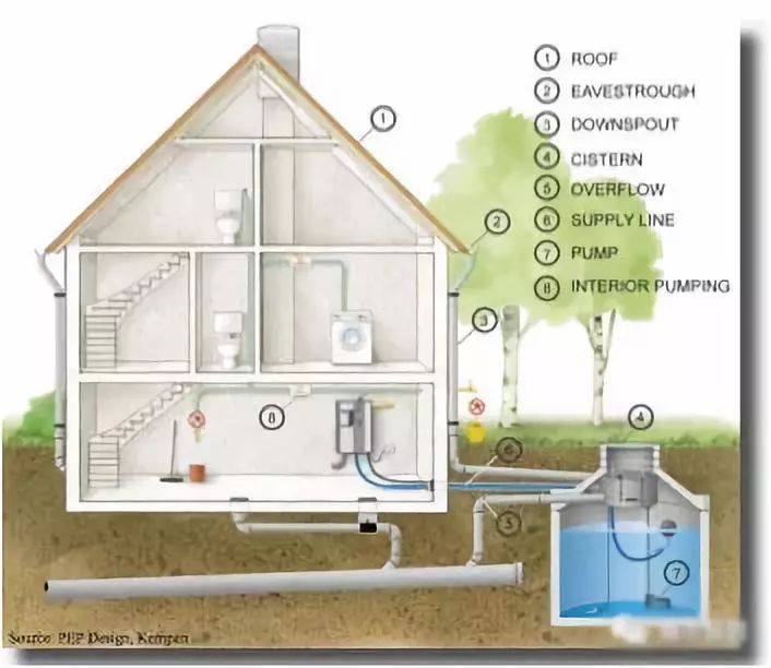 屋顶、马路、广场上排下来的雨水,可以先排到下沉式的绿地里、水塘里,或者专门建蓄水池,蓄存起来,用于以后浇花草、洗马路、冲厕所等等。