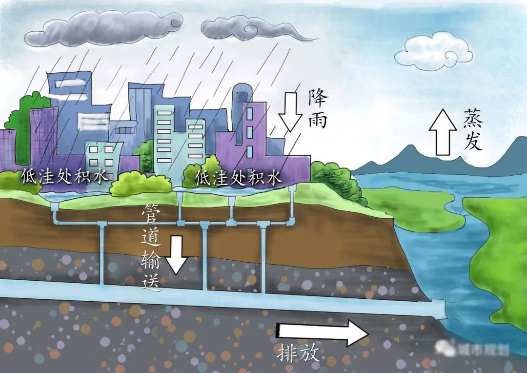 清楚了城市中雨水的输运机制,就不难理解,在暴雨时为什么会形成城市的内涝。